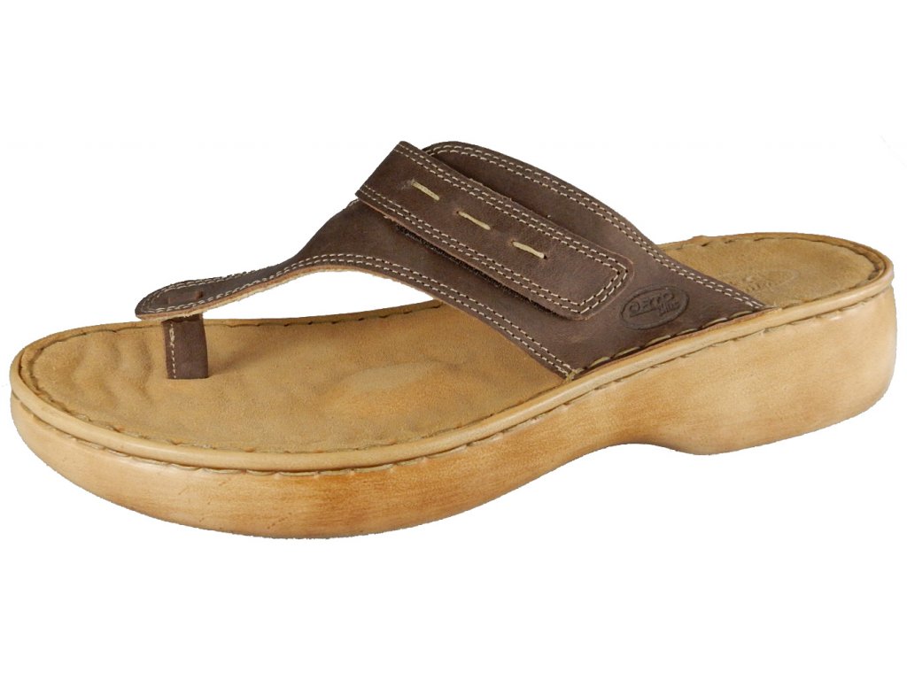 Trendy žabky. Kožený svršek, podšívky i stélka obuvi s podporou příčné klenby nožní. Pohodlná anatomicky tvarovaná PUR podešev s výškou v patě 20 mm.